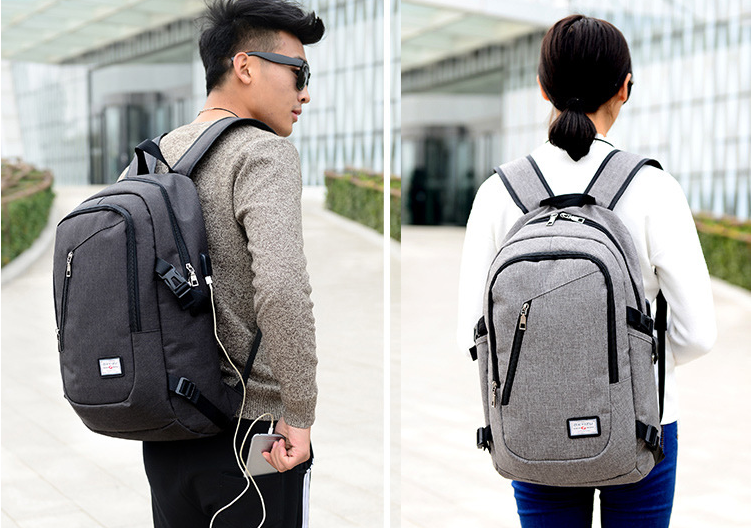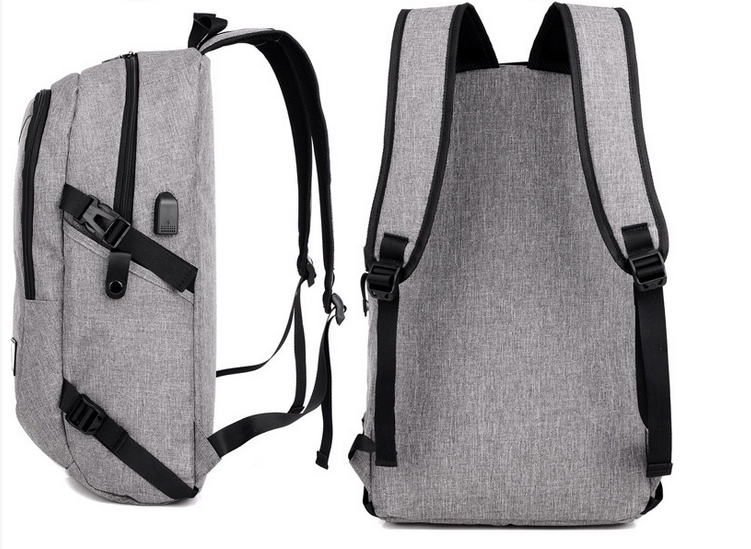 Men Grey Shcool Bag School Backpack USB Battery Charging Backpack